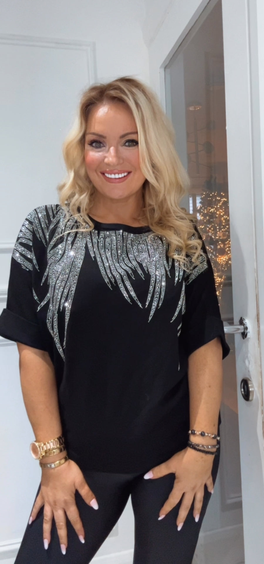 A gorgeous sparkle knit . Half sleeve with a tailored turn up . Adorned with gorgeous diamanté ✨✨✨✨✨